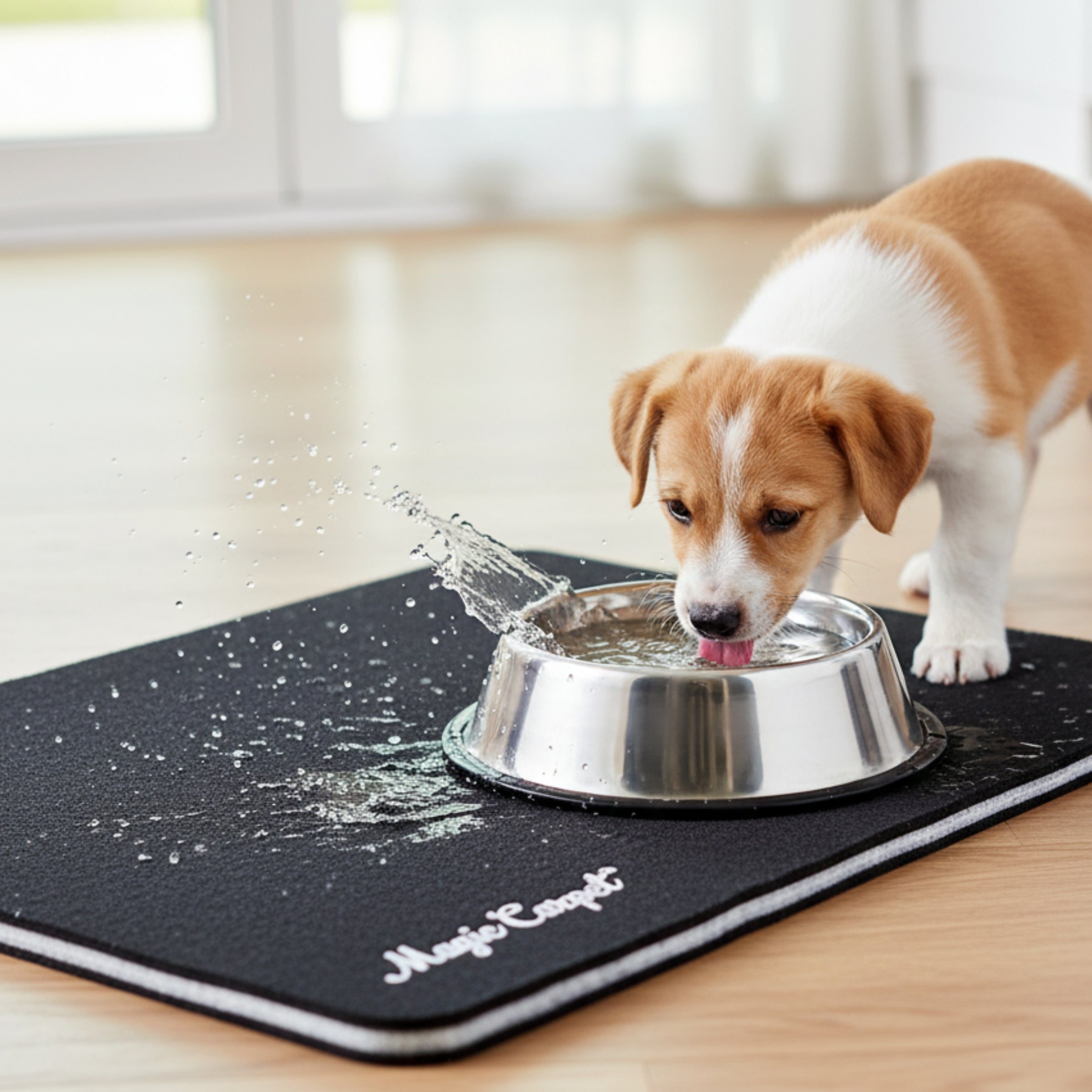 The Magic Carpet™ is the versatile, all-in-one solution for pet owners. See how it works as a comfortable and absorbent kennel liner that keeps pets dry , a durable feeding station mat that contains spills and protects floors , and a lightweight, portable mat perfect for travel in cars, RVs, and hotels.